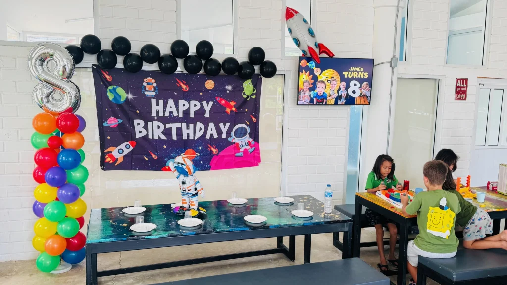 James turned 8 in an out-of-this-world style! He celebrated his cosmic-themed birthday party with his friends and loved ones at YouTopia Adventure Playground & Social Club. It was a full day of fun and activities. They enjoyed delicious meals and mini cakes and played indoors and outdoors, exploring the skate park and climbing walls. The highlight is a star-shaped piñata that added sparkle to the celebration.